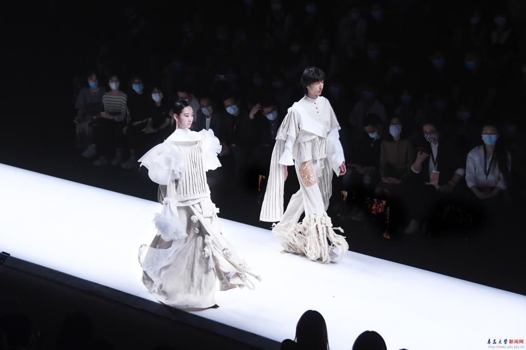 此次的青島大學服裝與服飾設計系畢業設計要求學生圍繞"YI "主題,以銘記歷史、開放包容、精益求精的態度,就工匠精神、民族精神、環保可持續發展話題展開系列設計。在設計表現上,以創新的觀念及豐富的表現形式展開:創意肌理面料、豐富色彩搭配、具有流動感的設計、幾何鏤空、立體元素等都成為了設計師們體現創意的重要手法,從設計、修改、定型、制作再到作品的最終成型,體現了每位學生對服裝設計的獨特理解與對當今世界的思考與認識。