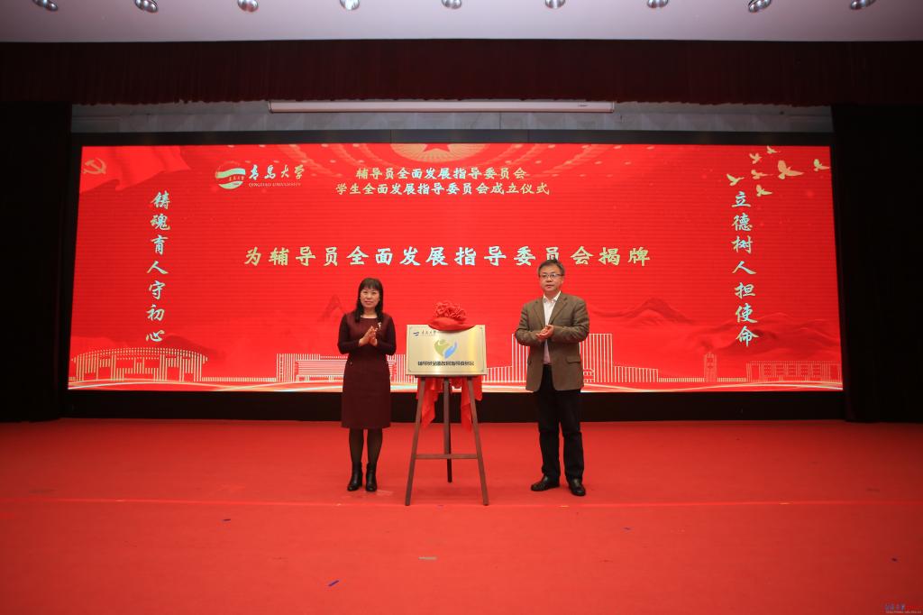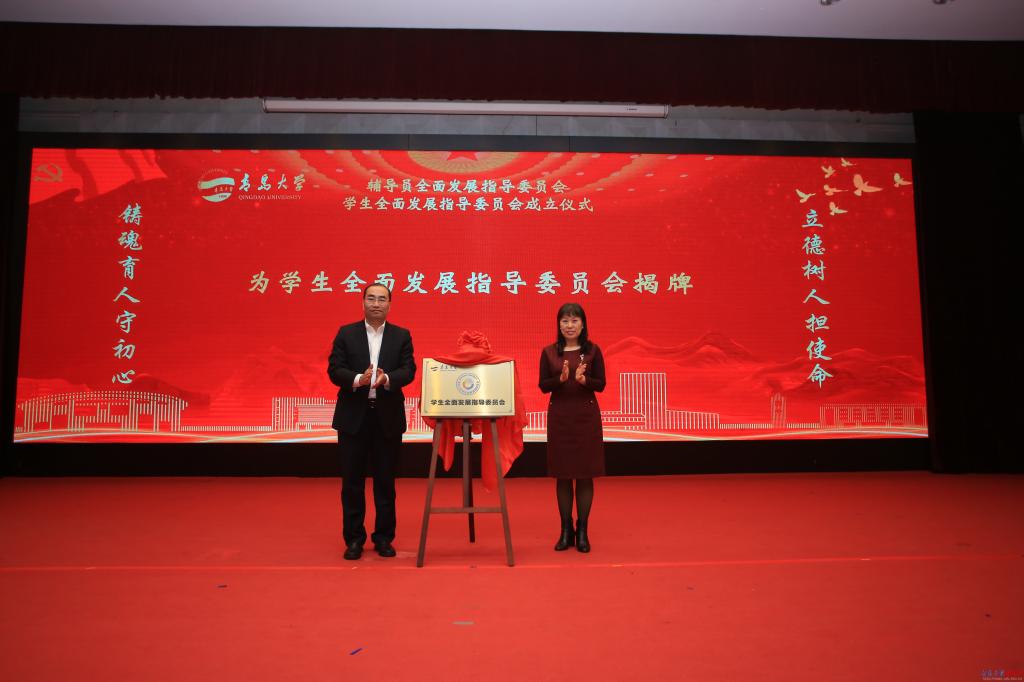 會上,校領導為輔導員全面發展指導委員會(簡稱輔指委)和學生全面發展指導委員會(簡稱學指委)揭牌,并為輔指委和學指委分指委主任頒發了聘書。