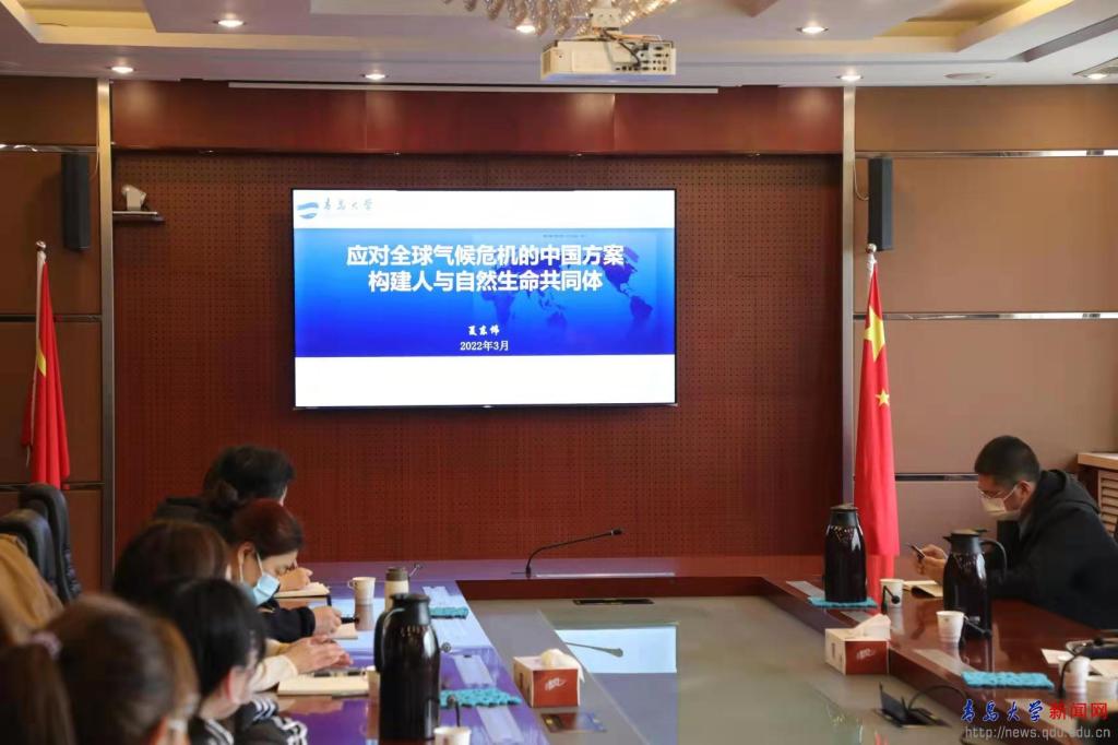 新聞網訊 3月19日上午,校長夏東偉在辦公樓201會議室,以“應對全球氣候危機的中國方案:建構人與自然生命共同體”為題,為外語學院2021級西班牙語本科學生代表以及通過釘釘直播方式收聽收看的學生,講授了一場精彩紛呈、富有深刻內涵的形勢與政策課。