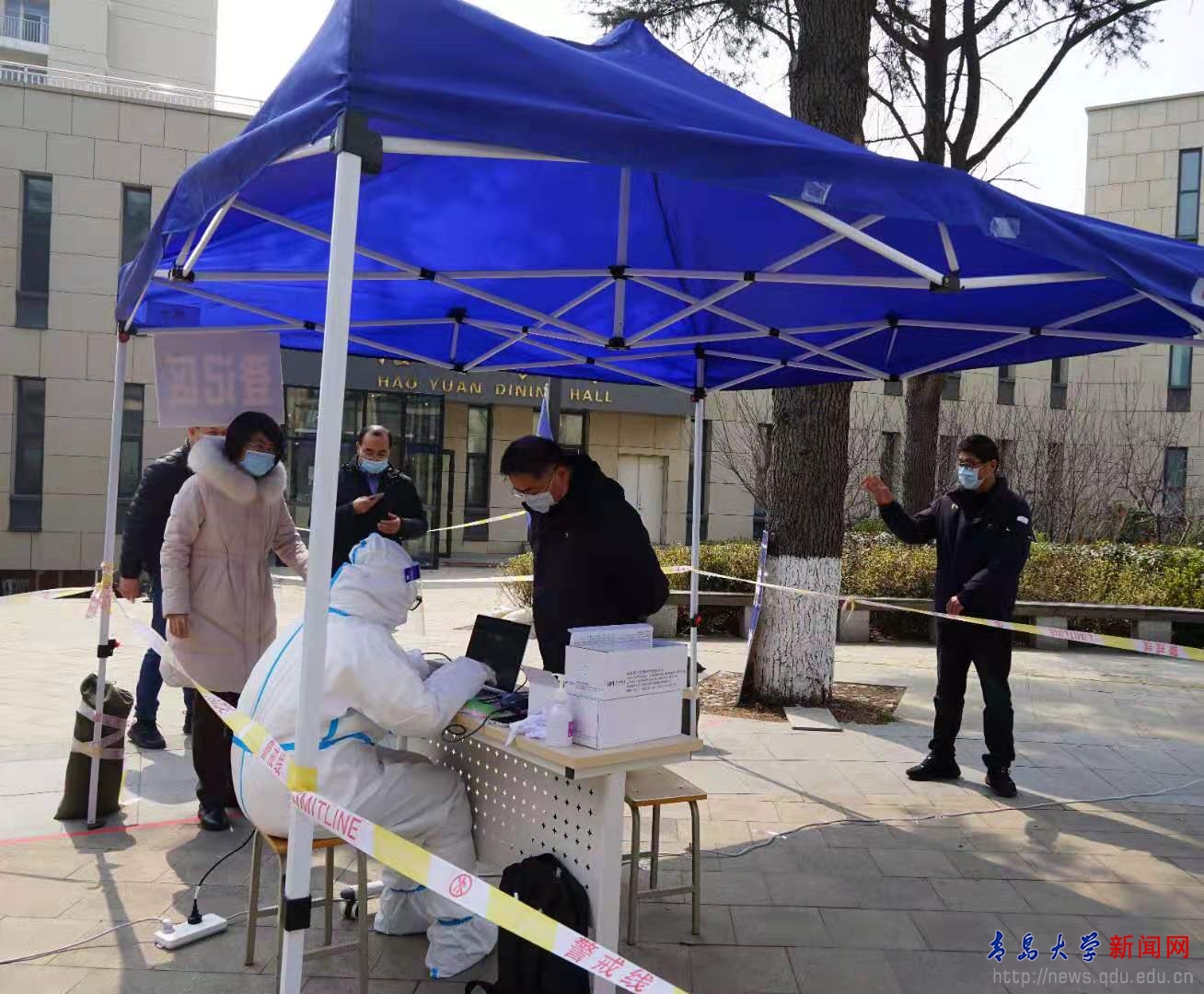 在新設立的浩園核酸檢測點,校黨委常委、紀委書記、省監委駐青島大學監察專員范玉斌詳細了解了公共衛生學院師生在醫學部、后勤管理處、安全保衛處、網絡中心、校醫院等單位的大力支持下,24小時內建成新點并正常運行的情況。他鼓勵師生們再接再厲、昂揚進取,在今后的學習、工作中收獲更多的成果。