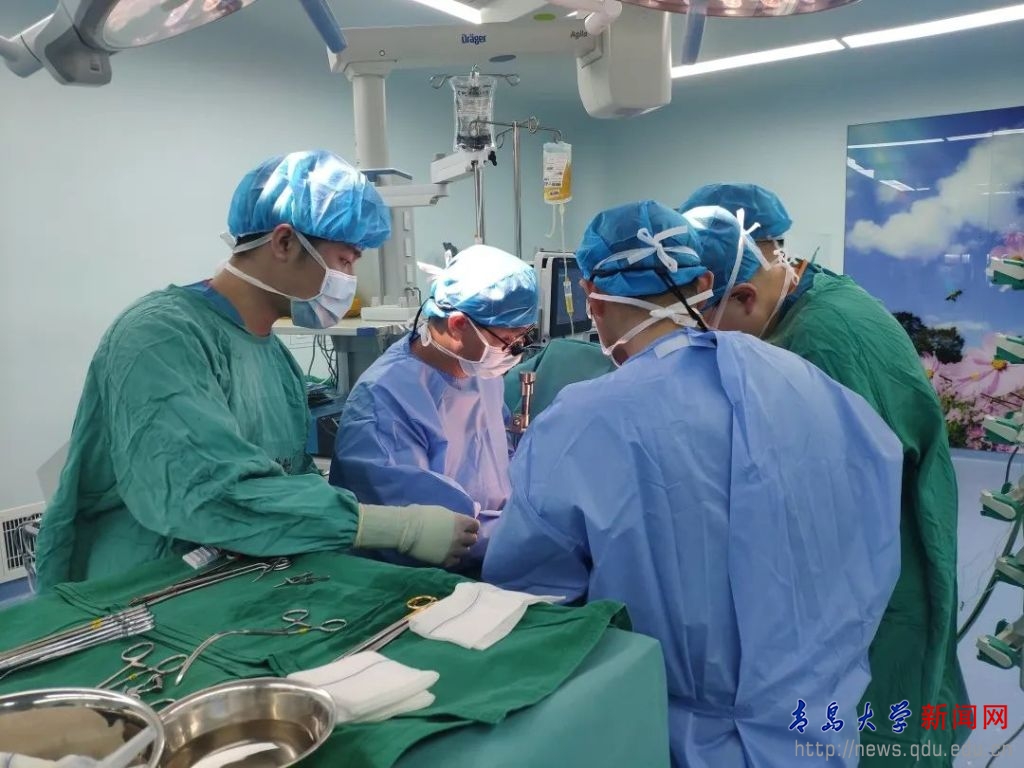 青大附院心血管外二科主任劉高利和團隊采用國際最前沿技術,為來自煙臺的患者成功獨立完成青島市首例胸腹主動脈人工血管置換術。