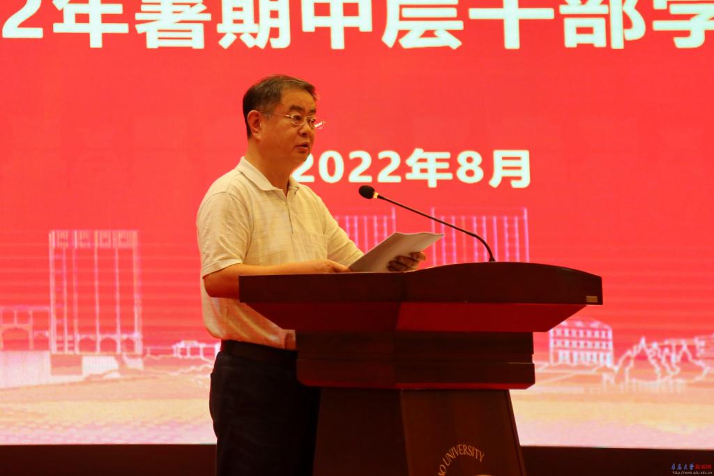 新聞網訊 8月27日上午,學校2022年暑期中層干部學習研討班在國際學術交流中心博學廳閉幕。校長夏東偉作總結講話并對下半年和開學前后的工作進行了部署。