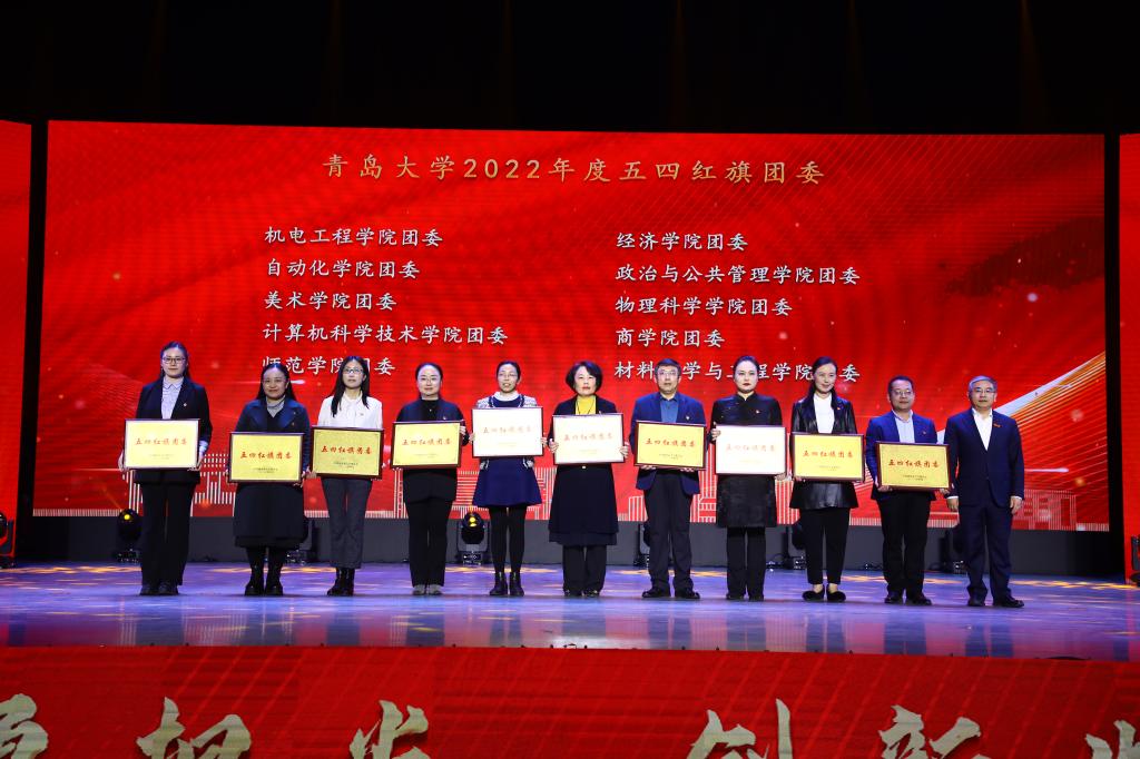 新聞網訊 4月28日下午,青島大學2022年度學團工作表彰會在青大劇院隆重舉行,校領導胡金焱、夏東偉、杜方波、李軍、劉彩云、孔偉金、陳濤、吳世珍出席表彰會。表彰會以“凝心聚力勇擔當 創新發展向未來”為主題,分為“共青團工作表彰”“學生工作表彰”“優秀學生及集體表彰”“家校社協同育人”四個篇章,對“五四紅旗團委”“學生工作先進單位”等20個獎項進行了表彰。