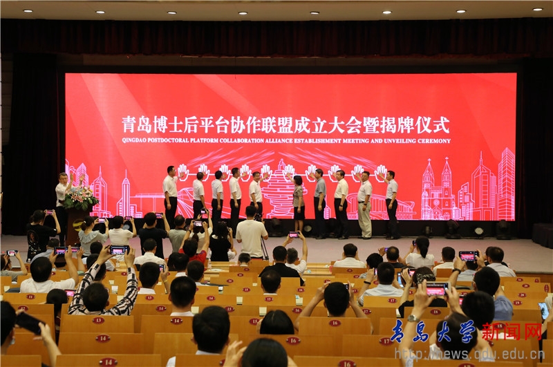 新聞網訊 8月19日上午,青島博士后平臺協作聯盟成立大會暨揭牌儀式在我校舉行,青島大學當選聯盟理事長單位,校長夏東偉當選為聯盟理事長。山東省人力資源和社會保障廳黨組成員、副廳長周春艷,青島市委組織部副部長、市人力資源和社會保障局黨組書記、局長胡義瑛出席會議并講話。會上,19家博士后站、基地圍繞聯合招收博士后、創新創業合作等領域進行了現場簽約,校黨委常委、副校長肖江南、于紅波出席簽約儀式。