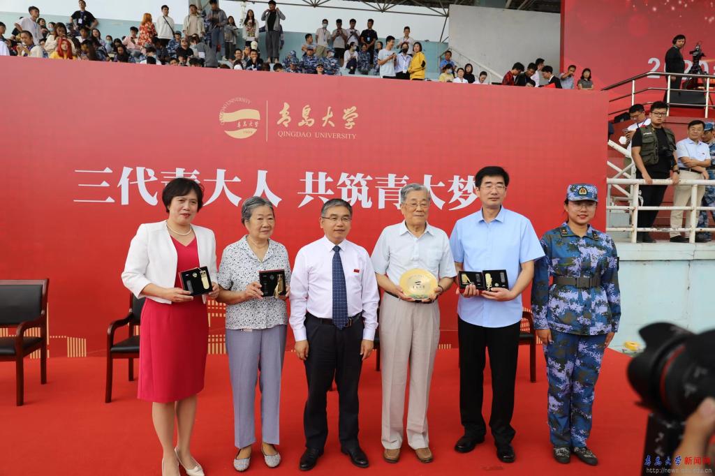 三代青大人,共筑青大夢。校黨委書記胡金焱向新生發(fā)言代表吳宜臻一家贈送榮譽牌,表示正因為像吳宜臻一家為代表的一代代青大人的堅守與奮斗,賡續(xù)青大基因,學校才能薪火相傳、奮勇向前。“長大后我就成了你!我和爺爺奶奶、爸爸媽媽都是校友!”六十載光陰,吳宜臻一家都與青大結(jié)緣,爺爺吳新彥作為原青島醫(yī)學院首屆畢業(yè)生、青島市放射學科資深專家和專業(yè)帶頭人,為我國醫(yī)學事業(yè)的發(fā)展做出了突出貢獻。吳新彥希望2020級同學們熱愛祖國,熱愛中國共產(chǎn)黨,熱愛學校,熱愛專業(yè),努力奮斗,勤學苦練,為祖國共產(chǎn)主義事業(yè)作出更大更多貢獻。