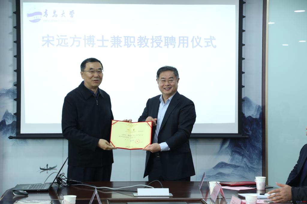 宋遠方將近年來著作贈予學校并與與會同志交流。他指出,青島大學是一所百年老校,不僅有悠久的歷史,如今也煥發了新的青春活力,薪火相傳,砥礪奮進,為國家和社會培養了大量人才,為國家和區域經濟社會發展作出了重要貢獻。黨的十九屆五中全會提出,堅持創新在我國現代化建設全局中的核心地位,把科技自立自強作為國家發展的戰略支撐。作為青島大學的一份子,在落實立德樹人根本任務,為學校發展、人才培養貢獻力量。