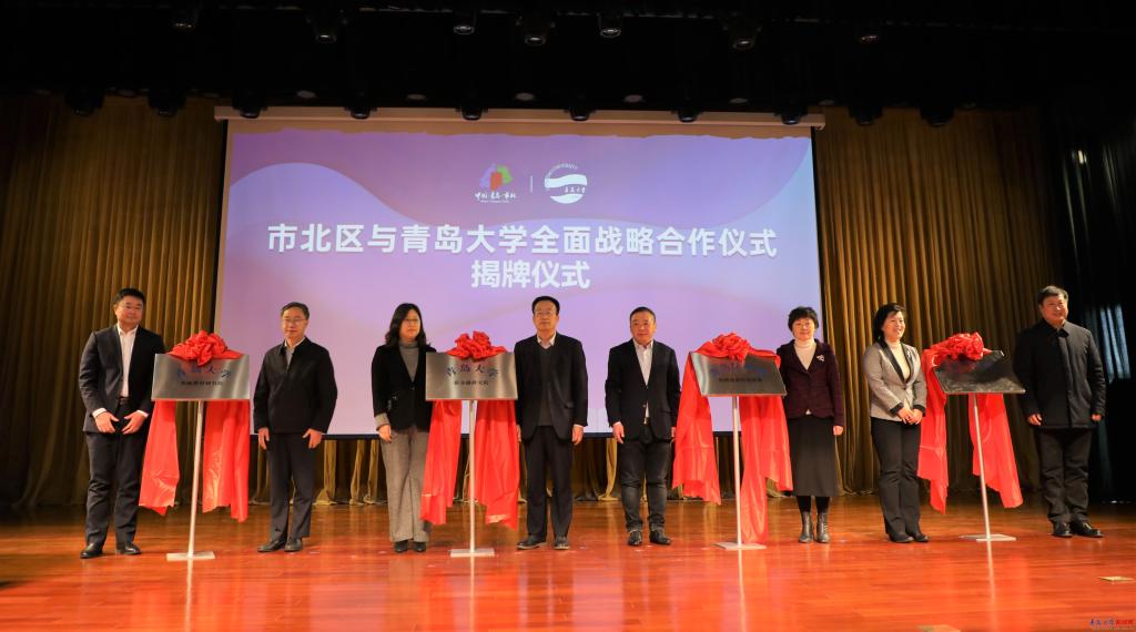 儀式現(xiàn)場(chǎng)發(fā)布了青島大學(xué)與市北區(qū)合作項(xiàng)目清單,根據(jù)具體合作方向,合作項(xiàng)目分為醫(yī)療健康、科技創(chuàng)新、基礎(chǔ)教育、文化旅游以及“三新”產(chǎn)業(yè)五大板塊,共353個(gè)擬合作項(xiàng)目。隨后,青島大學(xué)與市北區(qū)簽署全面戰(zhàn)略合作協(xié)議,同時(shí)進(jìn)行了合作共建青島大學(xué)市北附屬中學(xué)、智能關(guān)節(jié)鏡、海藻纖維紡織新材料等項(xiàng)目的現(xiàn)場(chǎng)簽約。此外,現(xiàn)場(chǎng)還進(jìn)行了青島青北科創(chuàng)投資集團(tuán)有限公司、青島大學(xué)基礎(chǔ)教育研究院、青島大學(xué)新金融研究院、青島大學(xué)青島醫(yī)學(xué)院科研成果轉(zhuǎn)化基地、“青島里院”寫(xiě)生基地等5個(gè)項(xiàng)目的揭牌儀式。