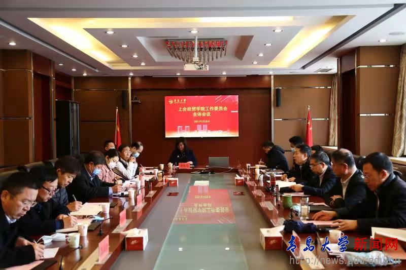 新聞網訊 2月25日,上合經貿學院工作委員會全體會議在辦公樓第五會議室舉行。校黨委書記胡金焱、校長夏東偉出席,校黨委副書記杜方波主持會議。