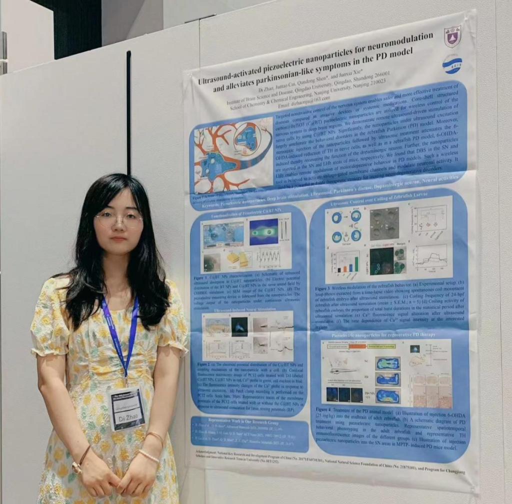 8月1日至4日,由日本神經學會主辦的日本神經科學學會第46屆年會在日本仙臺市舉辦,來自世界各地的神經科學領域專家學者約5000人參加了本次會議,大會共設置了140余場專題報告會。趙娣受邀參加國際青年學者交流會,并在“Autism and related diseases”專場做口頭匯報,就新型壓電納米顆粒在超聲作用下產生電刺激、調控神經信號用于帕金森病動物模型治療的研究工作進行匯報,現場引起熱烈討論。