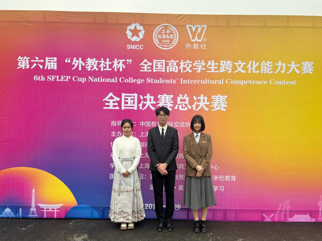 我校參賽團隊積極備賽,以省賽第一名的成績進入全國決賽,經過跨文化案例展析、即興問答和跨文化名言名句解讀三個環節的比拼,我校參賽團隊展示了在跨文化理論知識與實踐、國際視野、思辨能力、英語語言應用能力、演講與溝通技巧等多方面的綜合實力,獲得了大賽評委的認可。
