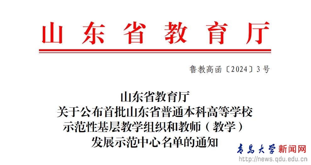 新聞網訊 近日,山東省教育廳公布了首批省級示范性基層教學組織名單,我校獲批立項11個,獲批數位列省屬高校第一,全省高校第二。