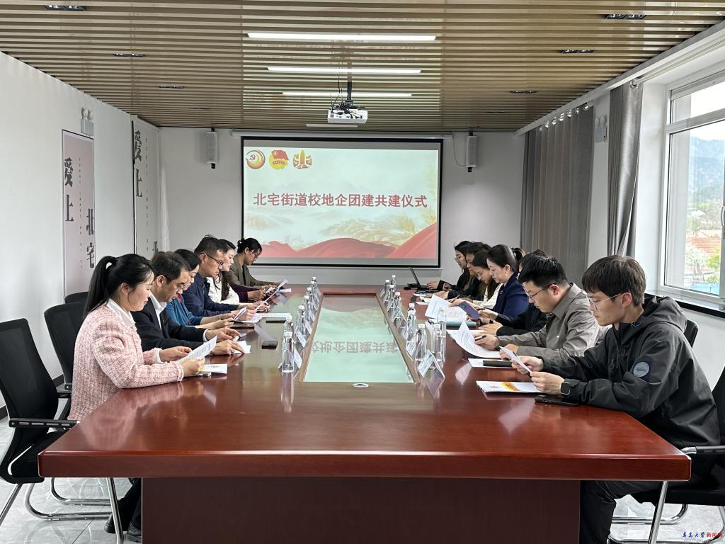 新聞網訊 近日,“團聚北宅”校地企團建共建儀式在北宅街道百果溪谷鄉村振興服務中心舉行。環境科學與工程學院團委與北宅街道團工委、青島世家百草生物科技有限公司簽訂“團聚北宅”校地企共建意向書,正式開啟校地企團建共建。北宅街道黨工委副書記李濤,學院黨委副書記孫竹媛、團委副書記尹昊以及企業代表等參加活動。