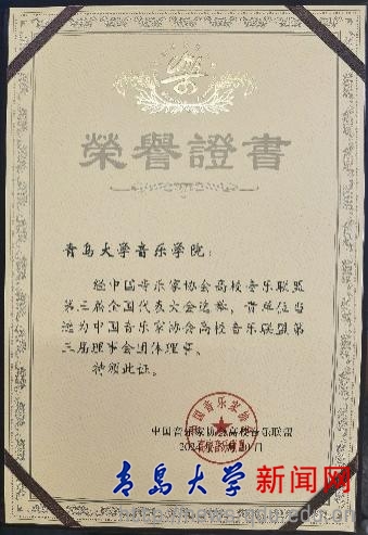 經中國音樂家協會高校音樂聯盟第三屆全國代表大會選舉,青島大學音樂學院當選為中國音樂家協會高校音樂聯盟第三屆理事會團體理事。